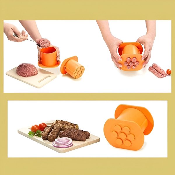 Sparen Sie Zeit und Energie! Dieses Gerät formt 7 gleichmäßige čevapčičs in einer einzigen Presse, perfekt für die Zubereitung großer Mengen in wenigen Minuten.