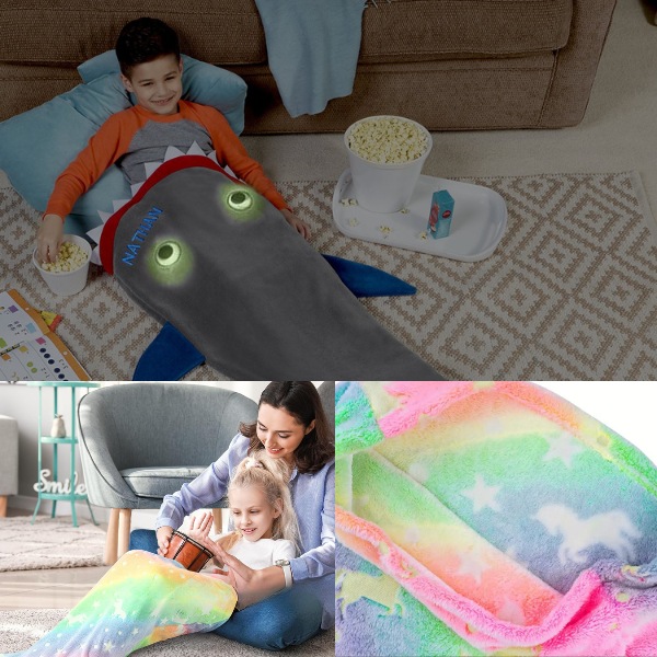 Weicher, hochwertiger flanell-fleece hält kinder warm, während sie sich nach der schule entspannen oder für die nacht ausruhen. Er eignet sich perfekt zum kuscheln auf der couch beim zeichentrickfilm oder zum warmhalten in kalten nächten. Ihre kinder werden vor freude kichern, wenn sie sich entweder in den hai- oder den meerjungfrauenschwanz einrollen.