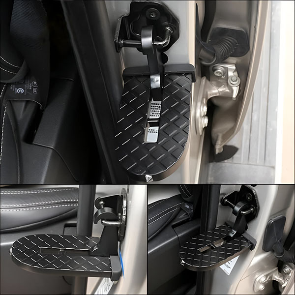 Diese robuste Trittstufe ist für ein Gewicht von bis zu 200 kg ausgelegt und eignet sich für den Einsatz unter schweren Bedingungen und für sperrige Gegenstände. Sie dient auch als Notfallwerkzeug, mit dem die Autoscheibe zur Evakuierung eingeschlagen werden kann.